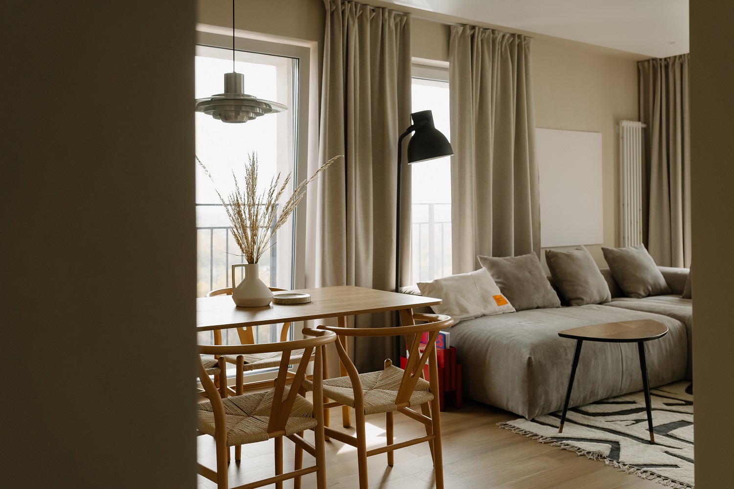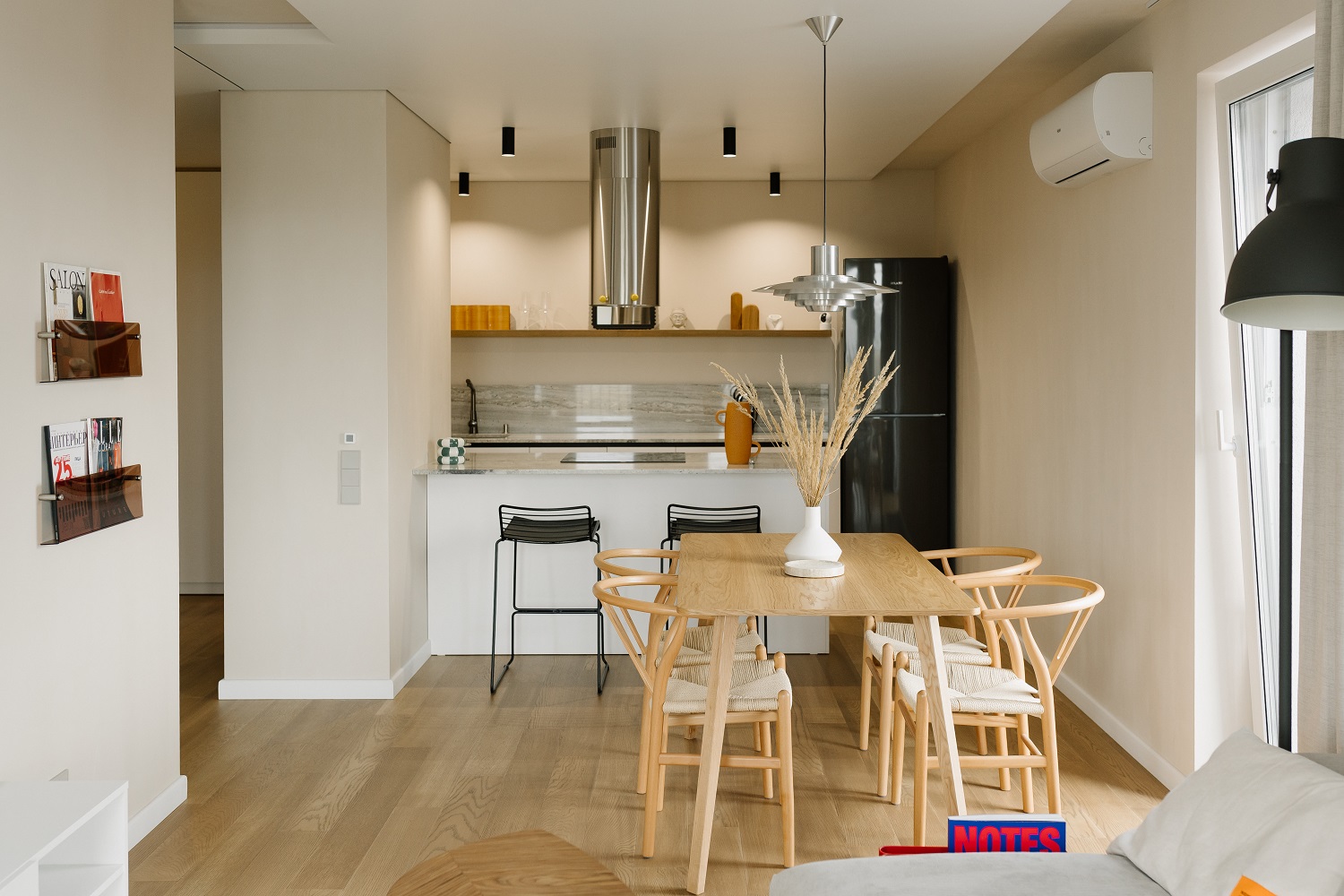 Эту квартиру спроектировал для себя дизайнер, создав идеальное пространство для пары. Продуманный функционал, панорамные окна с видом на Бугринский мост и сосновый бор, а также практичные материалы, такие как Quartz Parquet, делают её желанным объектом как для комфортной жизни, так и для выгодных инвестиций.